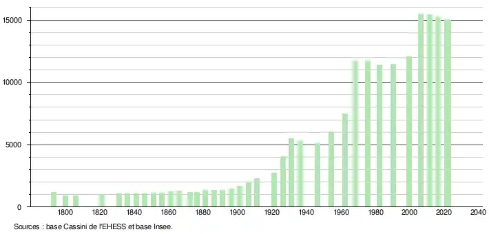 15 002 hab. (2022 en évolution de −1,79 % par rapport à 2016)