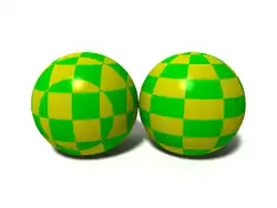 Dans l'exemple à droite, une texture en damier est attribuée à une sphère de deux manières. À gauche, sans cartographie UV, la sphère est couverte d'un damier 3d recouvrant l’espace euclidien. Avec la cartographie UV, les points du damier et ceux correspondants de la sphère se superposent en fonction de leur latitude et longitude.