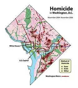La recherche sur la cartographie informatique de la délinquance a débuté en 1986, lorsque l'Institut national de la justice (NIJ) américain a financé un projet au sein du Département de police de Chicago pour essayer la cartographie de la délinquance comme auxiliaire de la police de proximité. Ce projet a été mis en œuvre par le CPD en conjonction avec la Chicago Alliance for Neighbourhood Safety, l'Université de l'Illinois à Chicago et la Northwestern University, et il en a été rendu compte dans le livre intitulé Mapping Crime in Community Setting: Event Geography Analysis[5]. Le succès de ce projet a incité le NIJ à lancer un « Programme d'analyse du marché de la drogue » (sous l'acronyme D-MAP) dans cinq villes, et les techniques développées à cette occasion ont conduit à la diffusion de la cartographie de la délinquance aux États-Unis et ailleurs, et à son intégration dans le système CompStat du département de la police de New York City.