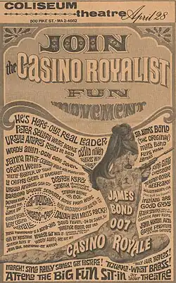 Casino Royale [kæˈsinoʊ ˈɹɔɪəl][1] est un film d’espionnage parodique américano-britannique coréalisé par Val Guest, Kenneth Hughes, John Huston, Joseph McGrath et Robert Parrish, sorti en 1967.