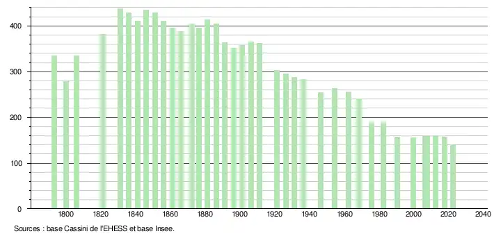 - ↑ Fiches Insee - Populations de référence de la commune pour les années 2006, 2007, 2008, 2009, 2010, 2011, 2012, 2013, 2014, 2015, 2016, 2017, 2018, 2019, 2020, 2021 et 2022.