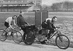 - ↑ Le rôle est de garantir à chaque coureur (stayer) la même distance par rapport à l'entraineur (et donc la même aspiration) ainsi qu'un niveau de sécurité nécessaire.