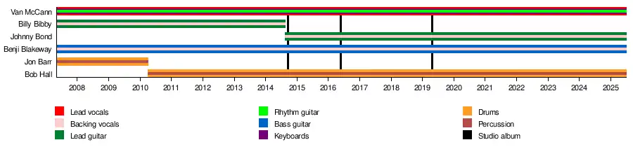 Le batteur Jon Barr a été remplacé par Robert "Bob" Hall en 2010. Hall a été présenté au groupe par le producteur gallois Russ Hayes, qui travaillait avec le groupe à l'époque[1],[20].