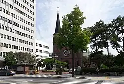 - ↑ (en) « Gyesandong Cathedral, Daegu », site officiel gouvernemental du patrimoine coréen.