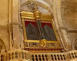 Orgue doré sur une tribune surplombant la cathèdre, de 1819, construit par le lombard Lodovico Piantanida (it) ou par son élève, Giovanni Mentasti[11]. Il a été classé Monument Historique au titre objet en 1974[12],[13]. Il a d'abord été placé dans le chœur, puis sur la tribune au-dessus du portail d'entrée en 1829, et, en 1837, sur une tribune au-dessus du trône épiscopal du XIVe siècle. C'est à l'occasion de ce dernier déplacement que le buffet d'orgue est installé. Il est classé au titre immeuble en 1840[14]. Il remplaçait un orgue du XVIe et XVIIe siècles très endommagé après la Révolution[15].