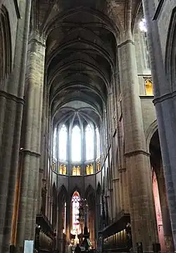 Un nouveau marché est conclu en 1465 avec André Amalric. Le chapitre ne fut sans doute pas satisfait car la continuation des travaux a été faite par voie de régie, et le premier architecte ainsi nommé a été Bernard Anthony, vers l’an 1500[10]. La pose des vitraux dans les fenêtres hautes a commencé dans les années 1460. La réalisation du chœur a dû s'achever vers 1470, avant la mise en place de la voûte de la croisée du transept.