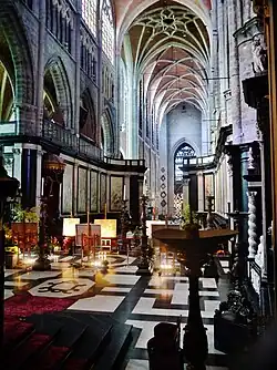 À l'intérieur de la cathédrale, on découvre un espace impressionnant à trois nefs d'inspiration brabançonne, datées d'environ 1550 et formées du chœur, du transept et des chapelles rayonnantes et latérales. De chaque côté se trouve une chapelle, dont la chapelle du Saint-Sépulcre.