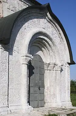 Louis Réau y voit plutôt l'influence de l'esthétique orientale. C'est le principe des sculptures de Mshatta en Syrie[4]. Peu à peu les souzdaliens prennent goût à l'ornementation luxuriante. Sur la cathédrale Saint-Georges[5] :