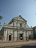 Façade de la cathédrale, rappelant le style jésuite | ||
