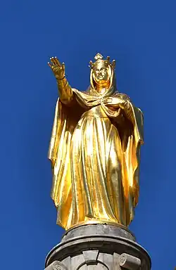 Il somme la chapelle royale et est recouvert de plaques de cuivre. La statue, en bronze doré, qui le surmonte est l'œuvre de Joseph-Elzéar Sollier, sculpteur aptésien, et elle a été fondue à Paris en 1877[43].
