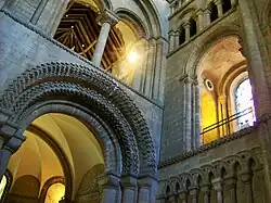 Les chapiteaux des bras des transepts, surtout ceux du sud, définissent un style anglo-normand avec des éléments normands : animaux fantastiques qui viennent des techniques utilisées dans les bordures de la Tapisserie de Bayeux, des éléments anglo-saxons comme les feuillages empruntés aux enluminures et des éléments géométriques communs aux pays des deux côtés de la Manche.