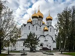 La cathédrale de la Dormition (en russe : Успенский собор, Ouspenski sobor, d'après le nom de la fête de la « Dormition de la Très Sainte Mère de Dieu », célébrée le 15 août et que les catholiques appellent aussi « Assomption ») est une cathédrale orthodoxe située à Iaroslavl, ville de l'Anneau d'or de Russie et dont le centre historique est classé patrimoine mondial par l'Unesco depuis 2005[1]. Elle fut édifiée au confluent de deux cours d'eau : la Volga et le Kotorosl. Entre la première construction en 1215 et sa destruction totale en 1937, elle fut restaurée et même reconstruite plusieurs fois : la première au début du XVIe siècle, et plus tard encore, au milieu du XVIIe siècle. Depuis 2004, à l'emplacement de l'édifice primitif, s'élève une église nouvelle, reconstruite avec des proportions plus grandes que la précédente.