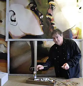 - ↑ C'est l'homme qui m'inspire. C'est lui qui me hante avec ses grandeurs, ses faiblesses, sa fragilité, son immense fragilité. Citation de l'Artiste publication Drouot Cotation Paris
