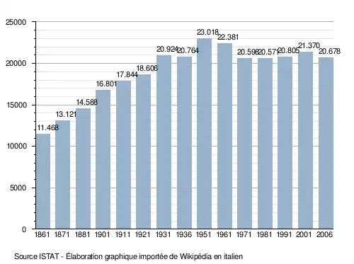 - ↑ (it) Popolazione residente e bilancio demografico sur le site de l'ISTAT.