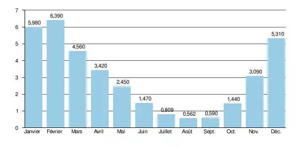 À l'étiage, le VCN3 peut chuter jusque 0,130 m3/s, en cas de période quinquennale sèche, soit 75 litres par seconde[2], ce qui est sévère, mais fréquent dans cette région.