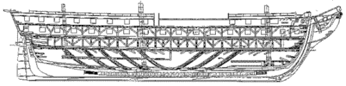 L'élément structurel "Diagonal rider" a été utilisé par Joshua Humphreys dans les premières frégates à voile de l'US Navy en 1794[4]. Les couples en diagonale sont visibles dans la structure de la coque intérieure de l'USS Constitution préservé exposé dans le port de Boston[5],[6],[4]. La structure était un exemple pionnier de placement de composants structurels "non orthogonaux " dans une structure par ailleurs conventionnelle pour l'époque[6]. Les "couples diagonaux" ont été inclus dans la construction de ces navires de la marine américaine comme l'un des cinq éléments pour réduire le problème de flexion de la coque du navire, et ne constituaient pas l'essentiel de la structure du navire ; ils ne constituent pas un cadre spatial complètement « géodésique ».