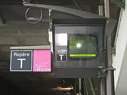 - les afficheurs TFT : installés depuis 2006, en remplacement des ancien afficheurs cathodiques, ces écrans sont composés d'un PC et d'une dalle TFT. Ils permettent de couvrir l'ensemble des besoins d'affichage actuels : une information visible, animée, facile à mettre à jour et fonctionnant sur liaisons séries industrielles ou réseaux IP standard. Ils offrent une diagonale d'affichage comprise entre 24 et 70 pouces (60 à 180 cm).
