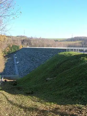 Le réservoir inférieur est situé à une altitude de 563 m. Son barrage de retenue, qui barre la rivière Mittweida, est un barrage en remblai avec joint extérieur asphalté haut de 57 m (51 m au-dessus du fond de vallée) et long de 393 m. Son volume atteint 920 000 m³, la surface du plan d'eau est de 49 ha et le volume de stockage moyen d'environ 7,7 millions de m³. Le volume de stockage maximal est de 7,975 millions de m³. L'altitude du faîte du barrage est de 563 m[4].