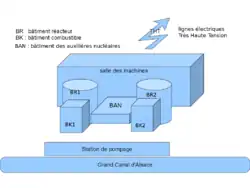 La centrale de Fessenheim et celle du Bugey, font partie d'un palier nommé a posteriori CP0[23]. La salle des machines est commune aux deux tranches, elle est accolée aux deux bâtiments réacteurs (voir schéma de l'architecture ci joint).