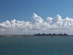 La centrale nucléaire de Gravelines est construite sur un polder dans une zone sensible aux inondations, et dont le niveau atteint jusqu'à 5 mètres en dessous du niveau de la mer[49],[50],[51]. La centrale est construite à 6 mètres au-dessus du niveau de la mer (à la cote NGF 5,54 mètres), car la zone inondable était évaluée lors de la construction à 5 mètres au-dessus du niveau de la mer[52],[53]. Ce niveau ne prenait pas en compte l'effet prévu du réchauffement climatique, avec une élévation attendue du niveau de la mer de plus d'un mètre entre et [54].