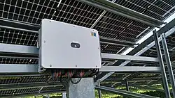 Des stratégies différentes ont été opérées par les deux constructeurs s'agissant du choix des Onduleurs solaires. Enerparc a opté pour des onduleurs centralisés du fournisseur allemand SMA. Ceux-ci permettent de collecter un grand nombre de panneaux solaires en un équipement de plusieurs Megawatt. TSE a choisi des onduleurs de chaine du chinois Huawei, on en dénombre 356 installés[5].