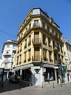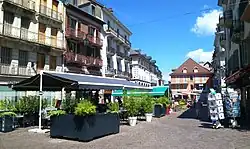 ![]() ![]() ![]() La place Carnot, lieu historique central. L'hôtel de ville d'Aix-les-Bains. Le Casino Grand-Cercle. Le monument aux morts et un immeuble en centre-ville. |