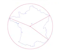 Pour un ensemble fermé borné du plan, il existe un unique cercle de rayon minimal englobant l'ensemble. Son centre est le point pour lequel la plus grande distance à un point de l'ensemble est la plus petite possible. Ce cercle minimum est en général dénommé cercle circonscrit, sauf dans le cas d'un triangle obtus où le cercle minimum est le cercle de diamètre le plus grand côté.