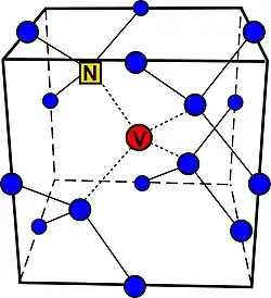 - ↑ (en) Marcus W. Doherty, Neil B. Manson, Paul Delaney, Fedor Jelezko, Jörg Wrachtrup et Lloyd C. L. Hollenberg, « The nitrogen-vacancy colour centre in diamond », Physics Reports, vol. 528, no 1, , p. 1-45 (DOI 10.1016/j.physrep.2013.02.001, Bibcode 2013PhR...528....1D, lire en ligne)