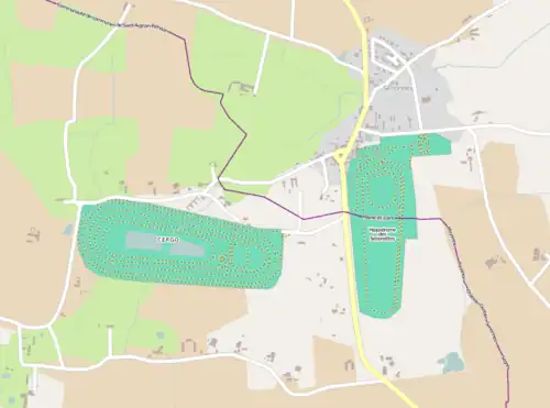 Carte du C.E.R.G.O et de l'hippodrome des Senonettes, à cheval sur les communes de Senonnes et Pouancé.