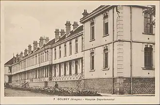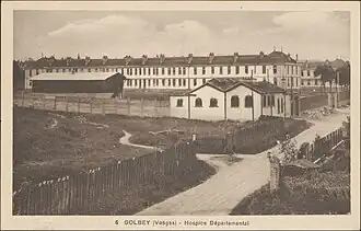 En 1912 sont créés deux hospices départementaux : celui de Châtel pour les femmes et celui d'Autrey pour les hommes. Un hôpital militaire est créé à Golbey au commencement de la Première Guerre mondiale. Au début des années 1930, les trois établissement fusionnent et concentrent leur activité sur le seul site de Golbey. L'établissement est réquisitionné par l'armée pendant la Seconde Guerre mondiale. Les 400 pensionnaires sont renvoyés au séminaire d'Autrey entre et . Toutefois, l'établissement est de nouveau réquisitionné en 1944, cette fois-ci par la Wehrmacht. L'établissement redeviendra, à l'après-guerre, un hospice pour les personnes âgés et démunies ainsi qu'un foyer départemental de l'enfance intégrant une pouponnière[17].