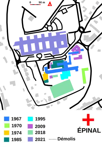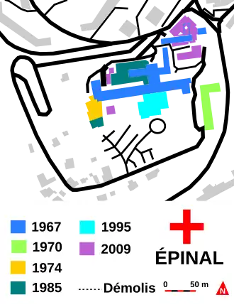 - ↑ « Cliché aérien de l'hôpital d'Epinal », sur Remonter le temps - IGN, (consulté le ).