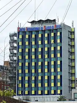 - Au nos 6-10 de l'avenue Maurice-Ravel dans le 12e arrondissement le site « Maurice-Ravel » sa tour résidence de 108 chambres et un centre de conférences[4]. Le complexe du CISP héberge également le Théâtre Douze « Maurice-Ravel » et le centre d'animation Maurice-Ravel qui occupe environ 2 400 m2 dans les niveaux inférieurs du bâtiment. S'il est attenant de la piscine Roger-Le-Gall, ouverte en à la même période que l'extension des bâtiments Ravel et structurant ensemble le secteur, le CISP ne l'intègre toutefois pas.