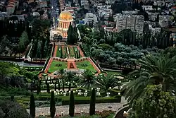 Mont Carmel, avec le mausolée du Báb en arrière-plan, à Haïfa, en Israël.