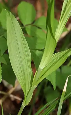 C'est une plante feuillue, autotrophe, de 30 à 50 cm de haut. La tige est mince à assez robuste, avec plusieurs gaines basales, à 6–8 feuilles, légèrement croûteuses vers l'apex. Les feuilles sont largement lancéolées à oblongues-lancéolées, de dimensions 6-14 × 1,5-3 cm, scabreuses abaxiales sur les nervures, l'apex long et acuminé[3].