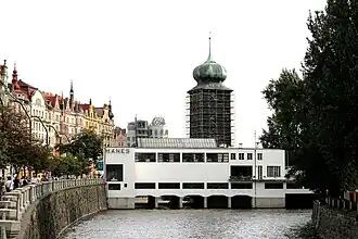 À cet endroit, entre 1928 et 1930, le cercle artistique Mánes fait construire un complexe fonctionnaliste avec restaurant, club, salle d’exposition et bureaux de l’association, le tout sur les plans d’Otakar Novotný.