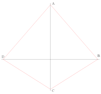 - Si et sont les longueurs des diagonales, l'aire est (comme dans tout quadrilatère orthodiagonal , i.e. à diagonales perpendiculaires, non croisé) :
