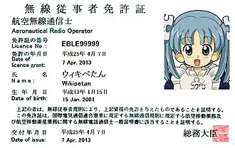 - ↑ Arrêté du relatif aux titres et documents tenant lieu de certificat d'opérateur autorisant la manœuvre des stations radioélectriques d'émission du service mobile aéronautique et du service mobile aéronautique par satellite, publié au JORF du .