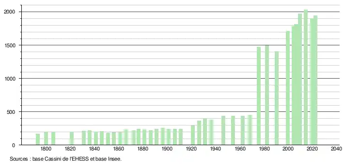 De 1962 à 1999 : population sans doubles comptes ; pour les dates suivantes : population municipale.