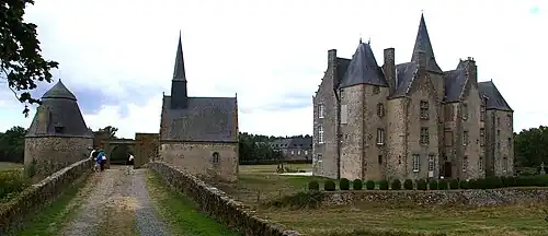 - ↑ La fiche Mérimée précise pour cette inscription : L'ensemble des communs et bâtiments de service, la cour, les jardins, les terrains d'assiette archéologique de la plate-forme de l'ensemble castral avec son mur de soutènement et la basse-cour ainsi que l'emprise de l'ancien étang et des douves