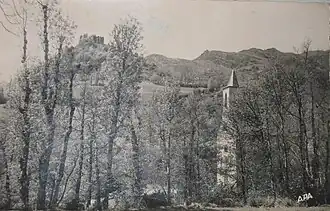 Vue du château sur son puech- Vue du château surplombant le hameau de Canac