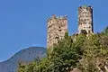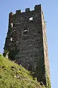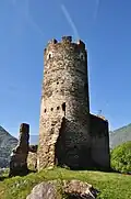 Le château de Chantemerle se présente sous la forme d'une enceinte polygonale irrégulière que commande une tour maîtresse cylindrique à archères du XIIIe siècle, et d'une tour carrée du XIVe siècle[11] située un peu en contrebas.