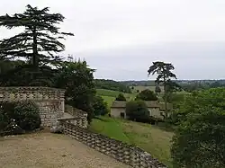 Du côté nord-ouest, deux étages de vastes terrasses (250 m2 chacune) ornées de balustrades mettent en valeur la perspective. De ces terrasses, le spectateur jouit d'une vue magnifique sur la vallée de la Charente.