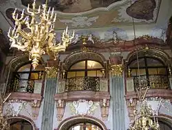 Le salon Maximilien a conservé son décor baroque avec ses deux cheminées, ses tribunes, ses stucs d'Ignatius Provisore et ses fresques. Le salon vert est également ouvert au public, ainsi que le salon bleu (salon de musique) et d'autres salles.