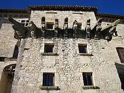 Deux tourelles carrées, sur les angles de la façade ouest, ne dépassent pas aujourd’hui le toit à quatre pentes qui couvre l’ensemble de l’édifice. C’est cette façade qui constitue le premier attrait du château, chaque tourelle en encorbellement reposant par des trompes caractéristiques sur les contreforts d’angle, ce qui représente à l’époque une rare prouesse technique. Leur rôle n’était pas militaire, mais uniquement un rôle d’agrément, servant de passage entre les trois balcons établis sur des arcades sur les trois faces de la partie occidentale, et se prolongeant en façade sud par des corbeaux qui soutenaient une galerie en bois. Le but, comme les grandes fenêtres à meneaux, était à l’évidence de jouir de la large vue sur la vallée qui s’étend en contrebas.