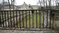 La grille armoriée du château, devant les fossés vue depuis la place d'armes. | |