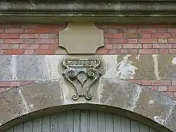 La cour devant ce corps de logis est partiellement fermée par un autre bâtiment. Un cadastre ancien montre que la cour d'entrée possédait une aile sud, détruite après la Première Guerre mondiale et remplacée par un muret. À l'ouest, l'aile d'entrée de la cour a fait aussi à cette époque l'objet d'une reconstruction presque totale, excepté le passage au centre, qui donne vers l'arrière de la mairie. Ce passage au centre permettant d'entrer dans la cour comprend une porte charretière et une porte piétonne. Une date, 1760, est sculptée.