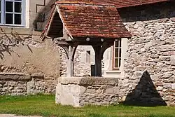 La demeure est un logis rectangulaire à un niveau, plus niveau de comble éclairé par quatre lucarnes ; elle est couverte d'une toiture de tuiles à quatre pans. Des communs en retour, de chaque côté, délimitent une cour à peu près carrée, fermée à l'avant par un mur de pierre et un portail. Dans cette cour, on peut voir un puits couvert à margelle carrée.