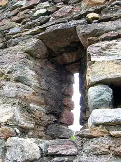 La muraille d'enceinte qui l'entourait, aujourd'hui en partie écroulée et étouffée par la végétation, avait une forme irrégulière afin de mieux s'adapter aux aspérités du terrain. Sur le côté nord, se dressait l'habitation principale, avec un mur de 80 centimètres d'épaisseur[2].