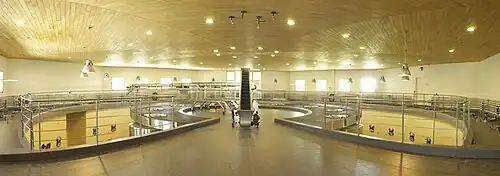 Ces principes d'agriculture biologique s’étendent jusqu’aux bâtiments techniques[11]. Le Château possède un cuvier circulaire à gestion gravitaire du raisin avec un bras mobile unique à Bordeaux, les baies se déversent naturellement dans chacune des cuves par gravité pour conserver une qualité optimale du fruit, le bras mobile permet ensuite la gestion parcellaire de la vendange.
