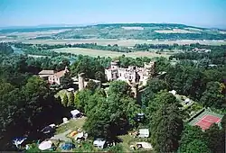 Au début du XXe siècle, l'aile ouest du château ne comportait pas à proprement parler de terrasse et ne servait pas en tant que tel, mais était une allée longeant le mur et prolongée et débordant un petit peu en largeur. Depuis sa reconversion en château-camping, l'aile ouest est bordée par une terrasse ainsi qu'une piscine. La végétation que l'on pouvait autrefois distinguer sur les parois n'est aujourd'hui plus d'actualité, et l'arbre qui se tenait avant à l'endroit même de la terrasse n'existe plus.